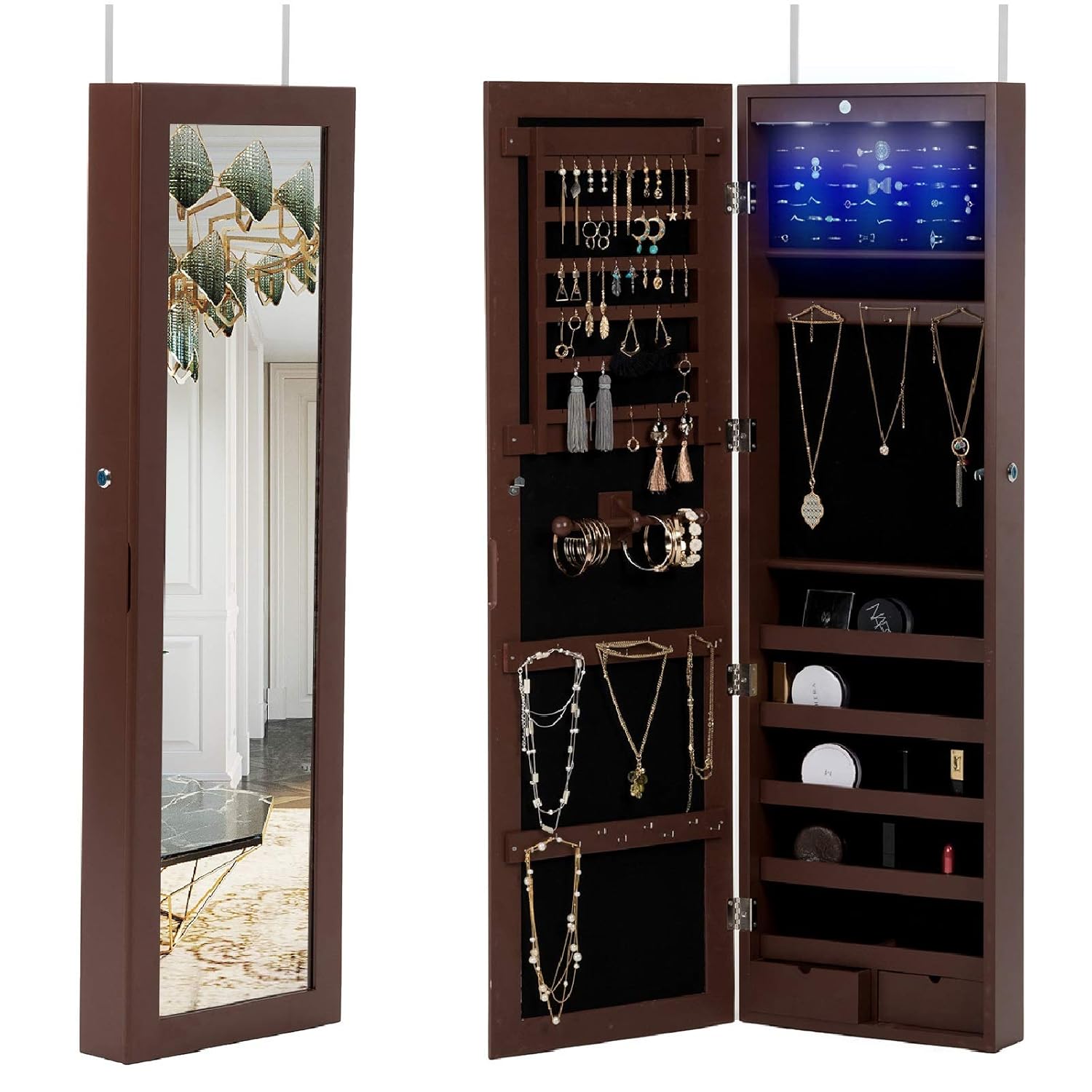 Plaza Astoria Over The Door/Wall-Mount Jewelry Armoire ... from images-na.ssl-images-amazon.com I do not own rights to this music. Sortwise ® lockable door mounted jewelry cosmetic mirror cabinet chest armoire wardrobe storage organizer, with lock. Not only do you get a full length mirror, but you also get hidden storage for things like jewelry. Floor mirrors all departments alexa skills amazon devices amazon global store apps & games audible audiobooks automotive baby beauty books cds & vinyl clothing, shoes & accessories women men. Make sure to get full coverage on the mirror! Langria free standing lockable full length mirrored jewellery cabinet armoire with 4 angle adjustable organizer storage for rings, earrings, bracelets, broaches, white finish. Of all the mirrors we i've included framed mirrors, metal trim mirrors, and backlit mirrors. It can lean against the wall at an angle, or you can mount it, whatever you prefer.